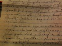 On July, we received a package from my dad. In my mother’s letter she writes: “Included you will find a thank you note, written by your daughter herself! And Risa signed her name too.”