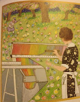 A week or so later, I ran across a lovely book by an artist named Cooper Edens. The book is called The Caretakers of Wonder. On the very first page, Edens writes: “This very night, while you lie quietly in your bed, open your eyes. Now, look out your window! For even at this yawning hour, so many of your friends are working to keep the world magical.” The illustrations throughout show people doing all sorts of amazing tasks: making new stars and climbing a rope ladder to put them up in the sky; keeping the moon company, and “feeding him when he’s too thin and watching his diet when he’s too full.” Others are busily “weaving the meadows and telling the trees where to stand,” or “painting feathers on birds and designs on the wings of butterflies.”